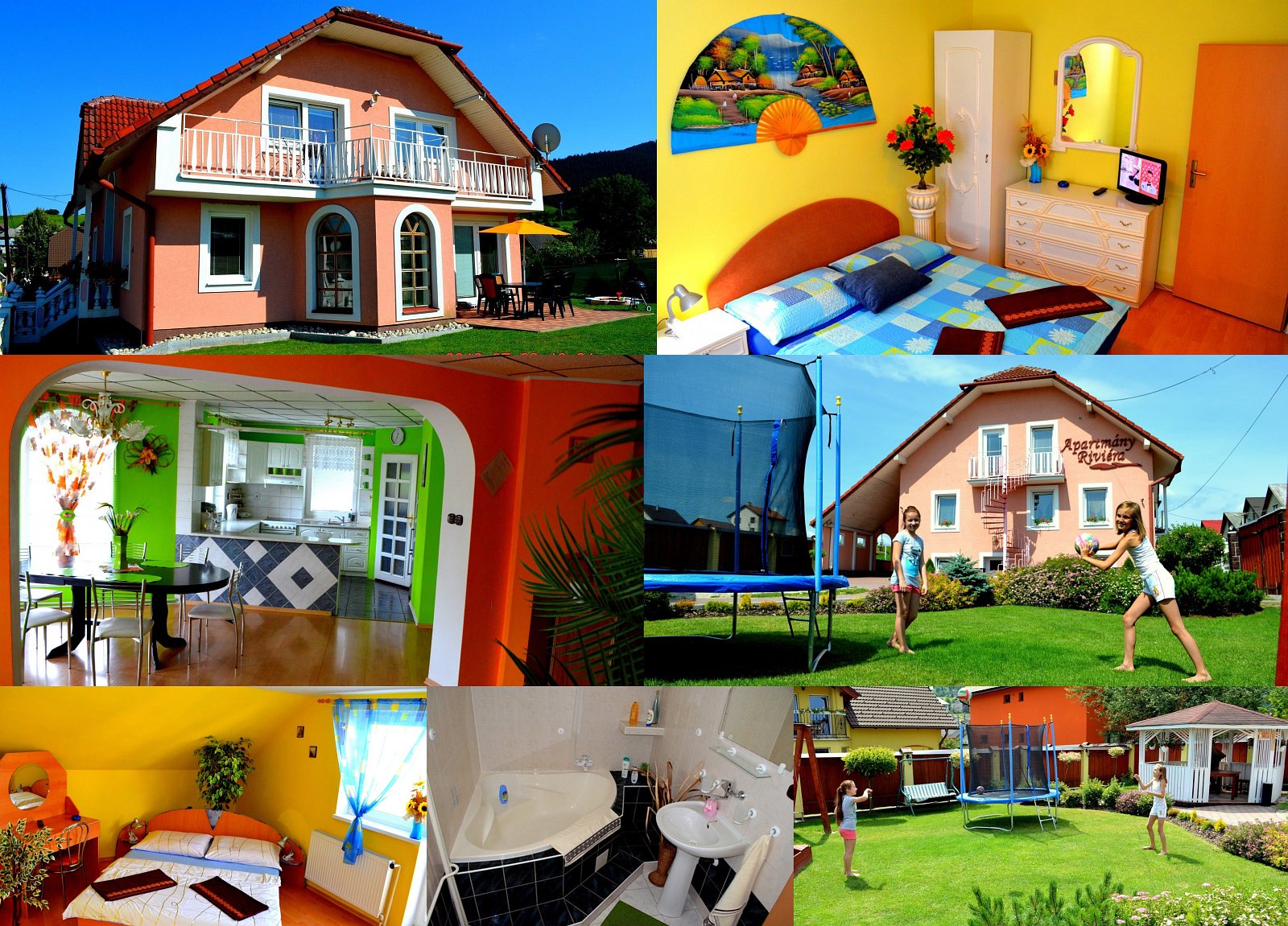 Ubytovanie: Dva apartmány, vhodné najmä pre rodiny s deťmi. Hostia majú k dispozícii veľkú záhradu (každý apartmán zvlášť), altánok s krbom, hojdačky pre deti, pieskoviská, záhradný nábytok, záhradný gril, masérky salón, bezplatné wifi pripojenie v apartmánoch aj v zahrade, parkovanie v záhrade. Apartmán č. 1 (8 lôžok): 2x 2-lôžková izba (1x TV, rádio, CD), spol. miestnosť (2 rozkl. pohovky), TV+SAT, DVD, kuchyňa (keramický sporák, el. rúra, mikrovlnka, toustovač, chladnička atď.), kúpeľňa (rohová vaňa), WC, terasa. Apartmán č. 2 (12 lôžok): 3 izby s lôžkami, kúpeľňa s rohovou vaňou, nadštandardne vybavená kuchyňa s jedálenským kútom, TV+SAT, balkón.