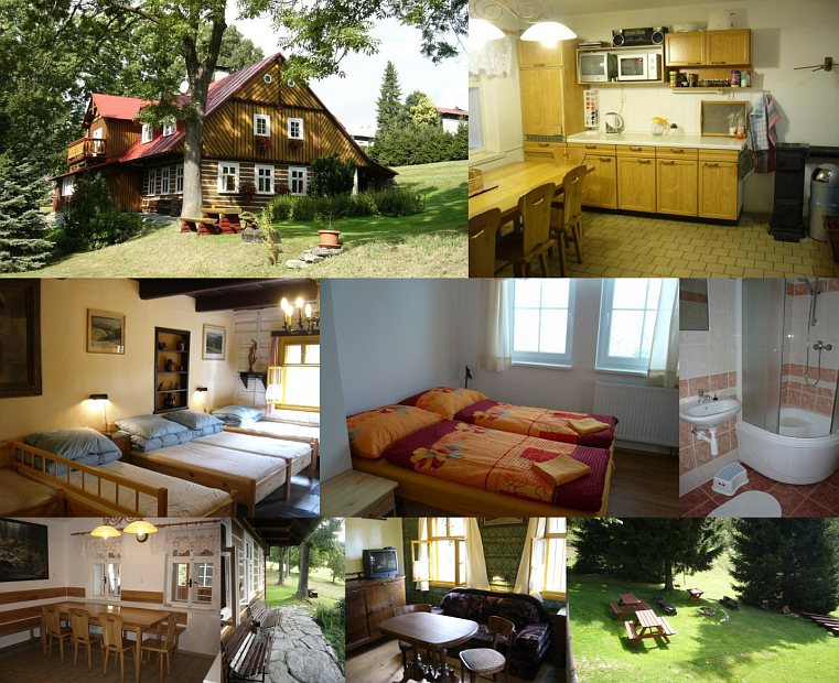 Ubytovanie: Chalupa + apartmány a pokoj ve vedlejší budově. Chalupa (13 osob): Vybavená kuchyň s jídelnou (2 lednice, mrazák, mikrovlnka, elektrická trouba, elektrický sporák, varná konvice). 2-, 4- a 7-lůžkový pokoj, v každém pokoji TV a akumulační kamna. Zádveří se v zimě používá jako lyžárna. Stolní tenis, šipky. Venku menší hřiště (volejbal, nohejbal, ringo, petanque), posezení (ohniště, gril). Apartmány a pokoj: dva 4-lůžkové apartmány (vybavená kuchyňka, soc. zařízení), 2-lůžkový pokoj (soc. zařízení), možnost přistýlky. Možnost ubytování se psem.