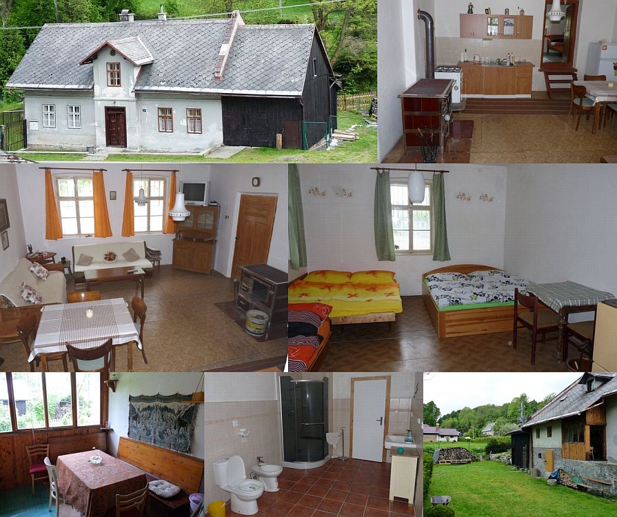 Ubytovanie: Chalupa s kapacitou 10 osob. V chalupě je vybavená kuchyň propojená s obývacím pokokojem (2 přistýlky), WC, koupelna se sprchovým koutem, 2 ložnice (1x3, 1x5 lůžek). V zadní části domu se nachází prosklená veranda s posezením, na zahradě za domem je posezení s ohništěm, pískoviště pro děti. Chalupa je součástí nedaleké rodinné biofarmy (koně, ovce, kozy, krávy). Není možné ubytování s domácími zvířaty.
