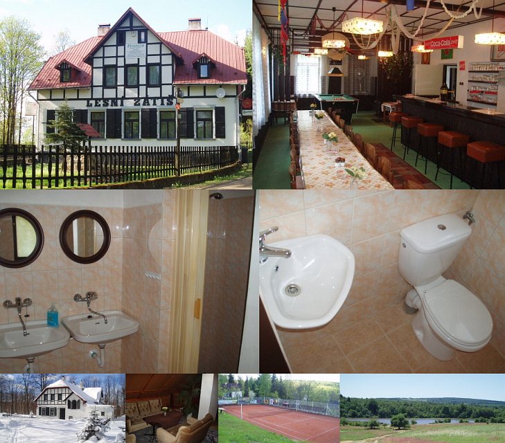 Ubytovanie: Chata pro 30 osob v 9 pokojích (4x2, 2x3, 1x4, 1x5, 1x6 lůžek) s možností přistýlky. V chatě je velká vybavená kuchyně (4 lednice, mikrovlnka, kávovar, varná konvice), TV+SAT, bar s výčepem (možnost točit pivo), biliard, stolní tenis, gril, ohniště, parkovací prostory. Vytápění: pevná paliva v kamnech (uhlí, dřevo), el. přímotopy. Chata se pronajímá jako celek. Je možné ubytování s domácími zvířaty. Vhodné místo k uspořádání oslav a svatebních hostin.