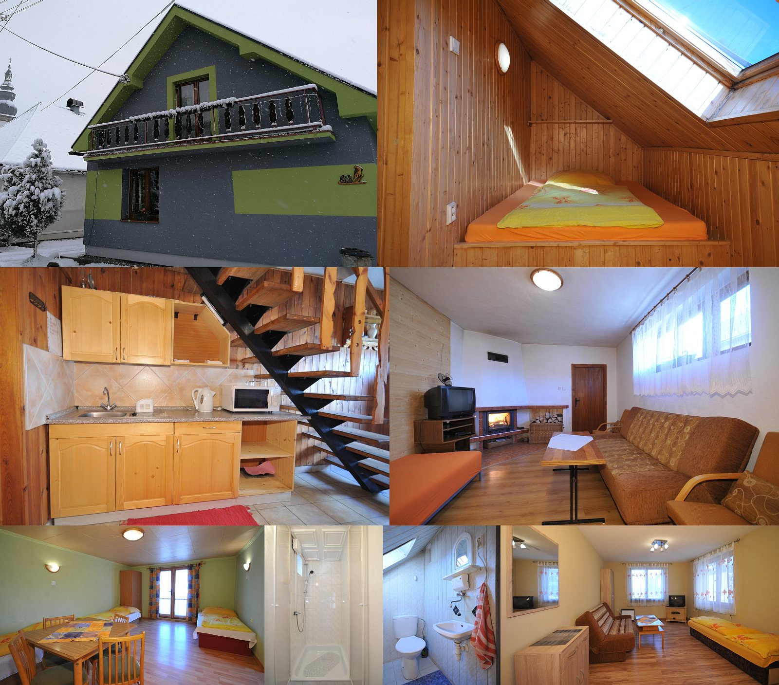 Ubytovanie: Dom s pre 13 osôb v 3 izbách. Prízemie: dve 2-lôžkové izby (TV, 2 prístelky, jedna izba má krb), kuchynský kút (el. varič, chladnička s mrazničkou, rýchlovarná kanvica), kúpelňa (sprchovací kút, WC). Poschodie: 5-lôžková izba (balkón, TV), oddelená časť pre 2 osoby, kuchynský kútik (el. varič, rýchlovarná kanvica), sprchovací kút a WC. Vonku je krytý prístrešok s posedením, ohniskom, grilom. Miestnosť na bicykle a lyže. Parkovanie v uzavretom dvore. Požičovňa horských bicyklov a kánoí.