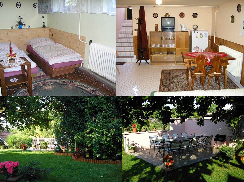 Ubytovanie: Apartmán vhodný pre veľké rodiny a partie. Dve 4-lôžkové izby, veľká obývačka s telkou a sedaciou súpravou na posedenie a spol. hry. V izbách je kľud. Kompletne vybavená kuchyňa s mikrovlnkou a rýchlovarnou konvicou, chladničkou atď. Vybavené soc. zariadenie. Príjemný suterén, hlavne v letnej horúčave. Posedenie a grilovanie na terasoch (krytý a otvorený).